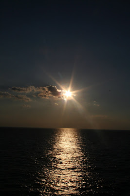 Here's another one of my favorite pictures of the sun at sea. I used the telephoto lens on my Canon Rebel XT, but this time played around with some of the manual settings, rather than letting the camera do all the thinking. The shots is a bit tilted, but that's the day when the boat started to his stormy waters.
